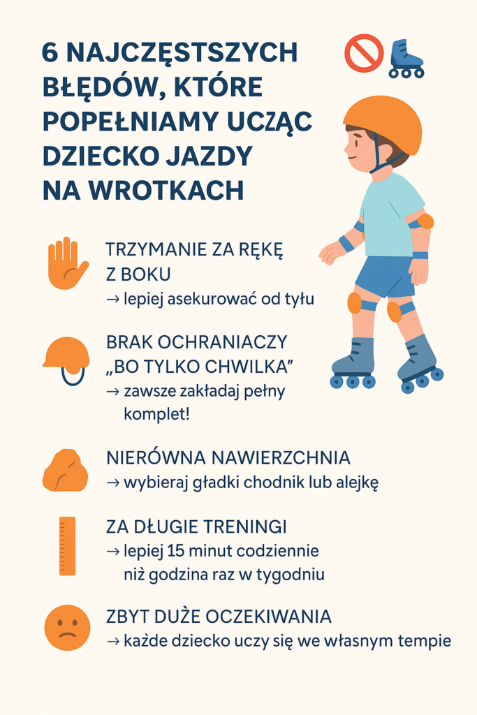 Nauka jazdy na wrotkach to proces, który wymaga więcej cierpliwości niż techniki. A nasze dobre intencje potrafią nieświadomie utrudnić dziecku naukę – sama wiem to z doświadczenia. Oto lista najczęstszych potknięć – nie tylko na asfalcie 😉