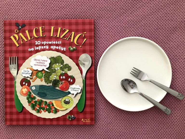 Przypadkiem trafiłam na tę książkę i postanowiłam ją kupić nie tylko dlatego, że porusza kwestie żywieniowe, ale również na jakość wydania. Palce lizać 10 opowieści na lepszy apetyt wydawnictwa Jedność z pewnością umilą czas podczas posiłku dziecka, choć w naszym przypadku sprawdza się o każdej porze dnia. Intrygujący ruchomy talerz pełen warzyw z dwiema dziurkami „co to za cyfra?” oraz „znajdź mnie w książce” umieszczony na okładce zainteresuje najoporniejszego niejadka.